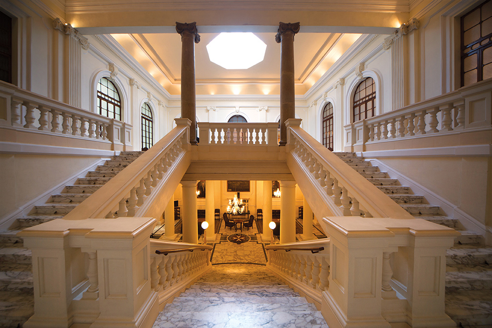 The large entrance hall leads to a majestic staircase that branches off into two. The spacious landing on the first floor leads to the two main reception areas: The Ballroom and the Presidents Room. Beyond the Ballroom lie the Dining Room, overlooking St George’s Square and the smaller Princess Room so named after the visit to the club of Queen Elizabeth II when she was still a princess.